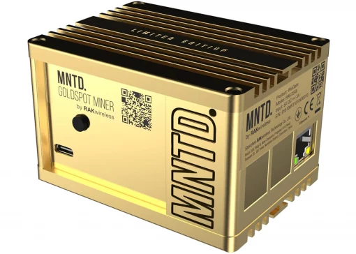 Le MNTD Helium Goldspot Miner est un dispositif de minage Premium développé par RAKwireless, offrant une mémoire RAM deux fois supérieure au modèle Blackspot Miner, avec 8 Go de RAM. En achetant ce mineur, vous bénéficiez d’un support technique VIP de la part de MNTD. Comme le Blackspot, il est spécialement conçu pour miner la cryptomonnaie Helium (HNT). Ce qui distingue le MNTD Helium Goldspot Miner des autres mineurs, c’est son efficacité énergétique optimale, ne consommant que 5 watts, soit moins qu’un routeur Internet standard. La configuration et la gestion de ce mineur se font facilement via l’application mobile Helium Hotspot.